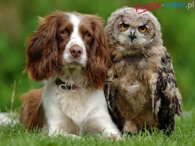 Puzzle Trawa, Pies, Sowa, Cocker spaniel