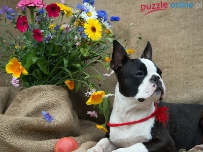 Piesek, Kwiatów, Czarno, Biały, Bukiet
