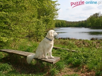 Ławka, Las, Biały, Piesek, Jezioro