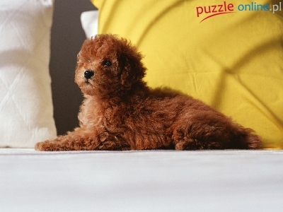 Puzzle Łóżko, Piesek, Poduszki