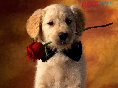 Puzzle Golden retriever, Pies, Róża, Szczeniak