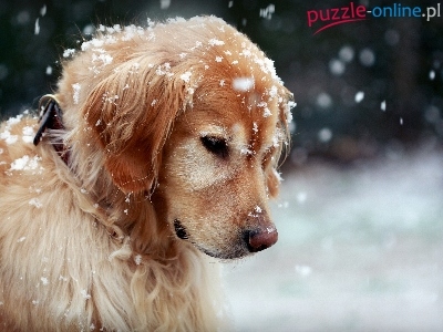 Puzzle Śnieg, Smutny, Piesek, Zima