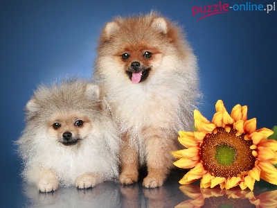 Pomeraniany, Słonecznik, Dwa, Pieski, Szpice miniaturowe