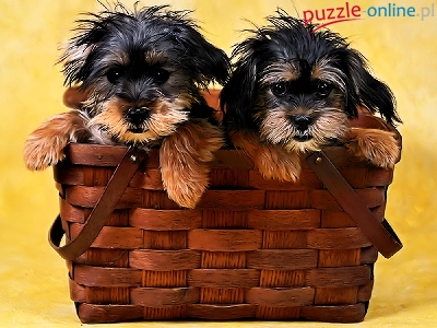 Puzzle Pieski, Dwa, Słodkie, Koszyk