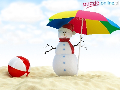 Puzzle Piłka, Bałwan, Plaża, Parasolka