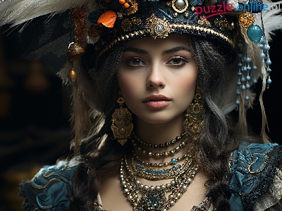 Puzzle Czapka, Kobieta, Biżuteria, Pióra