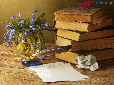 Pióro, Kwiatki, Książki, Kałamarz, Wazonik