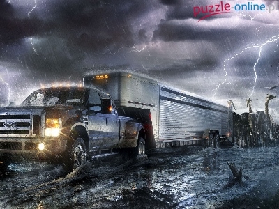Ford, Pioruny, Zwierzęta, Burza, Samochód, Naczepa, Woda