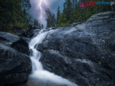Puzzle Rzeka, Skały, Drzewa, Pioruny