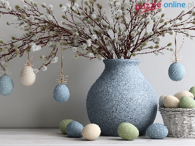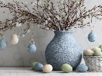 Kolorowe, Wielkanoc, Bazie, Grafika AI, Wazon, Niebieski, Pisanki
