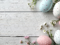 Różowe, Kwiaty, Białe, Kolorowe, Nakrapiane, Gałązki, Wielkanoc, Pisanki