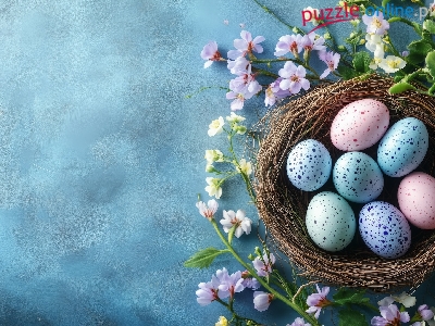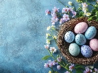Wielkanoc, Pisanki, Gniazdko, AI, Kwiaty