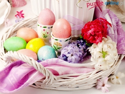 Pisanki, Wielkanoc, Koszyk, Kolorowe, Kwiaty