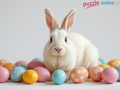 Puzzle Kolorowe, Biały, Królik, Pisanki
