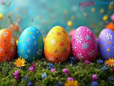 Wielkanoc, Pisanki, Kolorowe, Mech, Kwiaty