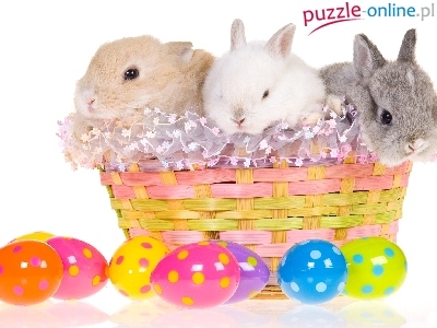 Pisanki, Króliczki, Wielkanoc, Kolorowe, Koszyk