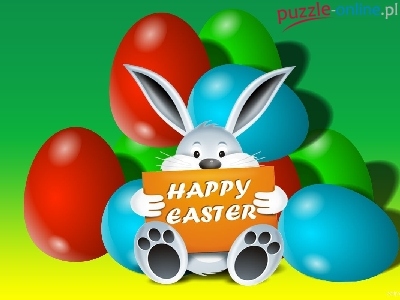 Puzzle Pisanki, Wielkanoc, Kolorowe, ZajÄ…czek