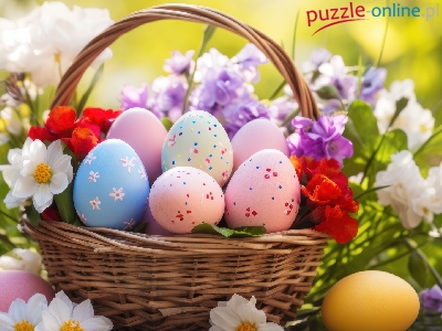 Różnorodne, Kolorowe, Wielkanoc, Pisanki, Kwiaty, Koszyk
