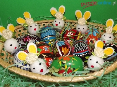 Puzzle Pisanki, Wielkanoc, Koszyk, ZajÄ…czki