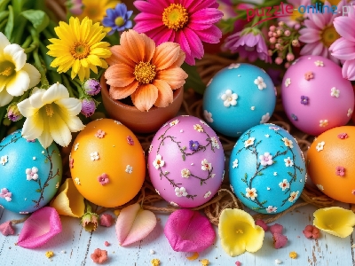Płatki, Jajka, Kolorowe, Pisanki, Wielkanoc, Kwiaty