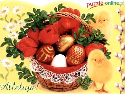 Pisanki, Koszyczek, Bazie, Wielkanoc, Święconka, Kurczak