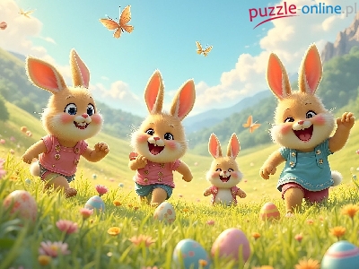 Puzzle Wielkanoc, Króliki, Jajka, Pisanki
