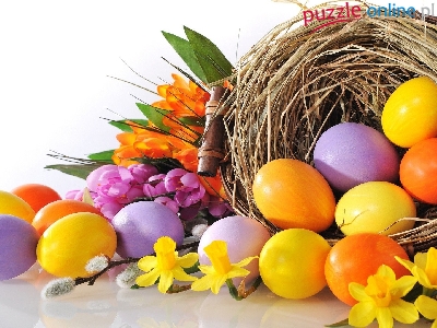 Puzzle Pisanki, Kompozycja, Wielkanoc, Kwiaty