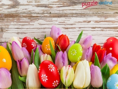 Puzzle Pisanki, Kompozycja, Wielkanoc, Tulipany