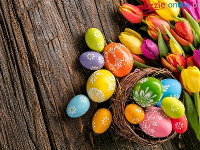Puzzle Pisanki, Kompozycja, Wielkanoc, Tulipany