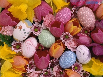 Puzzle Pisanki, Dekoracja, Wielkanocna, Kwiatki