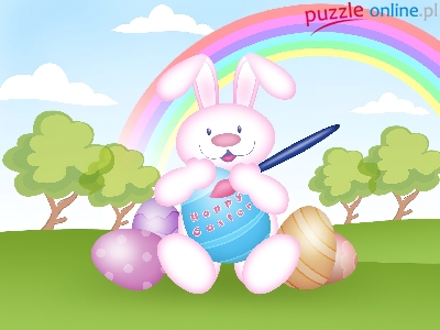 Puzzle Pisanki, Wielkanoc, Zajączek, Tęcza