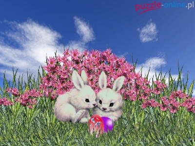Puzzle Pisanki, Wielkanoc, ZajÄ…czki, Trawka