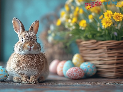 Kwiaty, Królik, Wielkanoc, Pisanki, Koszyk, Żółte