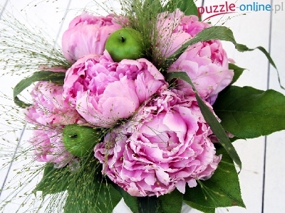 Puzzle Piwonia, Kwiaty, Bukiet, Jabłka