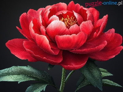 Kwiat, Piwonia, Czerwona, AI, Liście