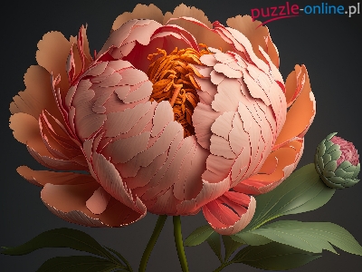 Grafika, Piwonia, Pomarańczowa, Listki, Pąk