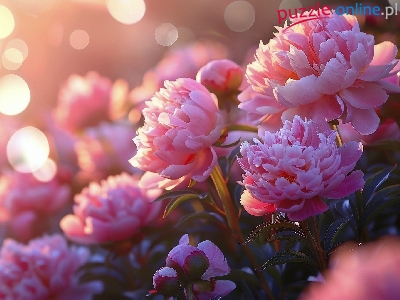 Puzzle Piwonie, Rozkwitające, Różowe