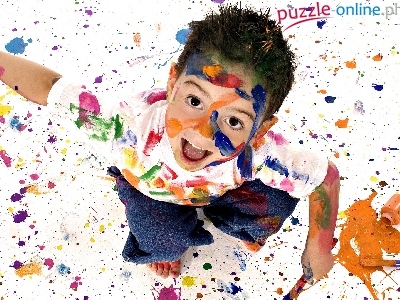 Puzzle Plamki, Chłopiec, Farby, Pędzle