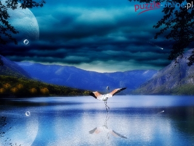 Puzzle Planeta, Góry, Jezioro, Flaming