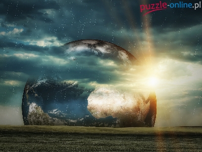 Puzzle Planeta, Zachód, Słońca, Deszcz