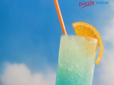 Plasterek, Drink, Lód, Niebieski, Słomka, Pomarańczy
