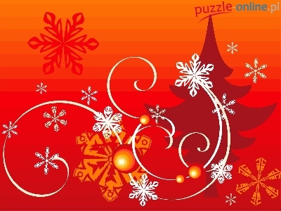 Puzzle Śniegu, Choinka, Płatki, Wstążki