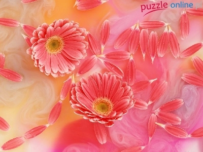Puzzle Płatki, Różowe, Gerbery, Kwiatów