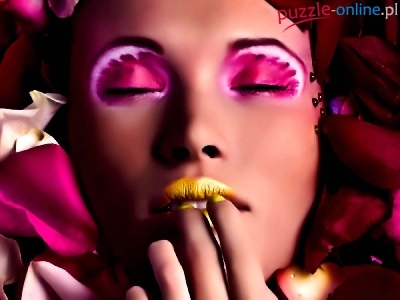 Puzzle Płatki, Kobieta, Makijaż, Róż
