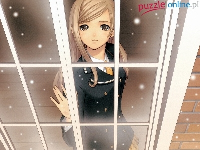 Puzzle Płatki, Dziewczyna, Okno, Śniegu