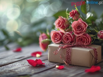 Puzzle Prezent, Kwiaty, Róże, Płatki