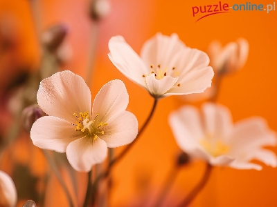 Pomarańczowe, Kwiaty, Białe, Płatki, Tło, Pyłek