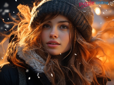 Puzzle Śnieg, Kobieta, Czapka, Płatki