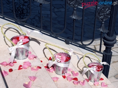 Płatki, Schody, Walentynki, Dom, Wiaderka, Róż