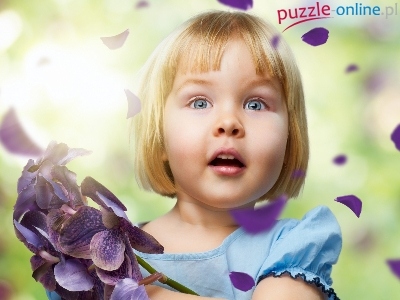 Puzzle Płatki, Dziewczynka, Zdziwienie, Kwiatów